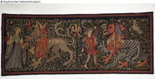 Found-Object Report Tapestry: Young people with mythical creatures Artist / Creator Frauberger, Tina Object type Consumer / interior textiles Material / TechniqueFabric (Wool) / embroideredLost Art-ID578277
