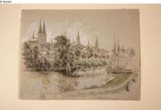 Found-Object Report View of Lübeck Artist / Creator Hagn, Richard von Object type Drawing Material / TechniquePaper / drawnLost Art-ID584316
