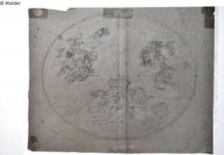Found-Object Report Sketch for the composition of the ceiling painting in the royal box of the restored Opera House Artist / Creator Kloeber, August von Object type Drawing Material / TechniquePencil ; Red chalk ; Paper (Construction paper) / drawnLost Art-ID475391