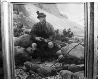 Search Request Staatsminister Freiherr von Lutz auf der Gemsenjagd (Foto nach einer verkleinerten Kopie in Familienbesitz) Artist / Creator Kowalski-Wierusz, Alfred von Object type Painting Material / TechniqueCanvas / paintedLost Art-ID451581