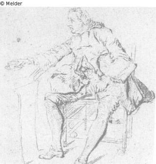 Search Request To the left turned sitting Abbé with a teacup in the rights Artist / Creator Lancret, Nicolas Object type Drawing Material / TechniqueRed chalk / drawnLost Art-ID120969