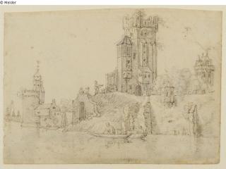 Found-Object Report Lake shore with castle, two boats on water Artist / Creator Molijn, Pieter de Object type Graphic Material / TechniqueChalk black ; Colour yellow-brown / drawn ; drawn (pen-and...Lost Art-ID583994