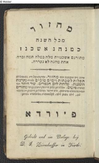 Found-Object Report Maḥzor mi-kol ha-shanah ke-minhag ashkenaz: meturgam ashkenazit milah be-milah ... / [1,1]: Maḥzor le-yom rishon ṿe-sheni shel Pesaḥ Publisher Zürndorffer Object type Book Lost Art-ID612451