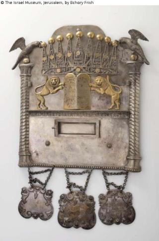 Found-Object Report Torah shield decorated with parrots, lions, and crown Artist / Creator Zimmermann Object type Crafts and other folk arts Material / TechniqueSilver / repoussé, stamped, cast, engraved, filigree, and...Lost Art-ID572977
