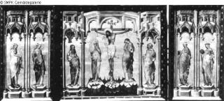 Search Request Altar with crucified Christ, Saints (Virgines Capitales) and holy martyrs Artist / Creator Unknown (German (Saxony)) Object type Retables Material / TechniquePanel (Lime)Lost Art-ID257690