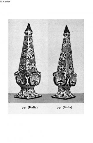 Search Request Ein Paar Obelisken Artist / Creator Unknown (Deutsch / Berlin ?) Object type Portable art Material / TechniqueCeramics ; Glaze (Faience) / painted blueLost Art-ID405344