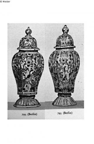 Search Request Ein Paar Deckelvasen Artist / Creator Unknown (Deutsch / Berlin) Object type Vessel Material / TechniqueCeramics ; Glaze (Faience) / painted polychromeLost Art-ID405345