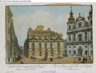 Found-Object Report Die Minoritenkirche mit dem Landhaus Artist / Creator Schütz, Carl Object type Print Material / Techniqueprinted (copper engraving) ; colouredLost Art-ID240245