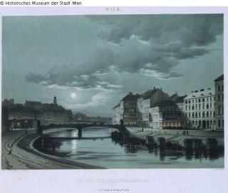 Found-Object Report The Ferdinandsbrücke (Ferdinand Bridge) at night Artist / Creator Sandmann, Franz Joseph Object type Print Material / Techniqueprinted (colour lithography)Lost Art-ID240235