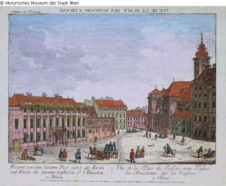 Found-Object Report Die Freyung mit der Schottenkirche Artist / Creator Siccrist, J. M. Object type Print Material / Techniqueprinted (copper engraving) ; colouredLost Art-ID240249