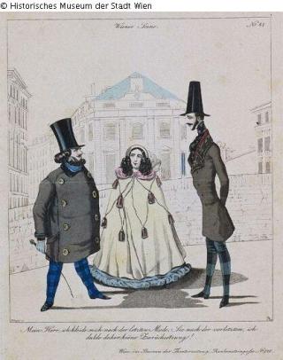 Found-Object Report Satirisches Blatt zum Thema aktuelle Damenmode Artist / Creator Seiger, A. Object type Print Material / Techniqueprinted (copper engraving) ; colouredLost Art-ID240247
