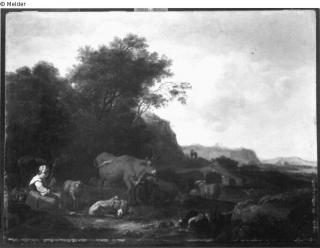 Found-Object Report Landschaft mit Hirtin und Herde Artist / Creator Klomp, Albert Jansz. (?) Object type Painting Material / TechniqueOil ; Panel / paintedLost Art-ID244988