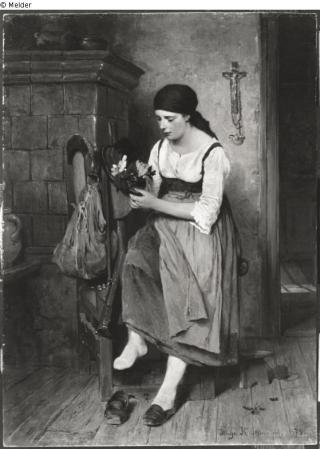 Found-Object Report Farm girl on the furnace Artist / Creator Kauffmann, Hugo Object type Painting Material / TechniqueOil ; Panel (Mahogany) / paintedLost Art-ID519131