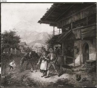 Found-Object Report Farmer couple in front of the tavern Artist / Creator Quaglio, Lorenzo (Umkreis) Object type Painting Material / TechniqueOil ; Panel (Oak) / paintedLost Art-ID519137